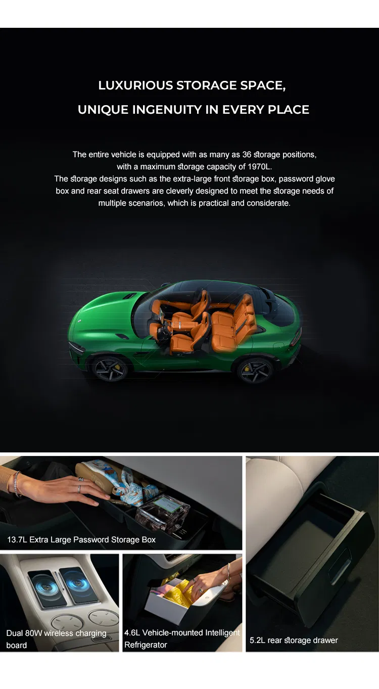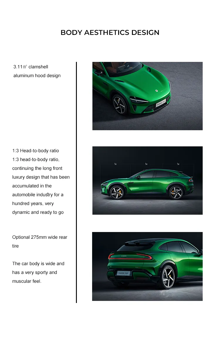 ຍານພາຫະນະຮັບຮອງເອົາການອອກແບບຮ່າງກາຍທີ່ຖອຍຫລັງ, ແລະໃບຫນ້າດ້ານຫນ້າຮັບຮອງເອົາການອອກແບບທີ່ປິດລົງດ້ວຍເສັ້ນດ່າງແສງທີ່ມີຮູບຊົງ. ຄວາມຍາວ, ຄວາມກວ້າງແລະຄວາມສູງຂອງລົດທັງຫມົດແມ່ນ 4999 * 1996 * 1608) 1608 (1600) ມມ, ມີລົດເຂັນຂອງ 3000 ມມ. ດ້ານຂ້າງແມ່ນມີປະຕູທີ່ບໍ່ມີປະຕູແລະການອອກແບບທີ່ເຊື່ອງໄວ້, ເຊິ່ງທັງງາມແລະສາມາດຫຼຸດຜ່ອນຄວາມຕ້ານທານລົມ. ລົດທີ່ຮັບຮອງເອົາລະບົບການສະແດງທີ່ມີຄວາມຫມາຍຂອງຫນ້າຈໍ "Sky MAGOR ປະກອບດ້ວຍສາມຫນ້າຈໍ minileled. ລໍ້ພວງມາໄລສາມລໍ້ແມ່ນມີກົນໄກ Geearthift, ເຊິ່ງສະດວກໃນການປະຕິບັດງານ. ບ່ອນນັ່ງຂອງລົດຖືກປົກຄຸມດ້ວຍຫນັງ Nappa, ແຖວຫນ້າແມ່ນບ່ອນນັ່ງກິລາແບບປະສົມປະສານ, ແລະມີຄວາມພ້ອມກັບບ່ອນນັ່ງທີ່ໃຊ້ໃນສູນກາງແລະ 10 ຈຸດ. ແຖວດ້ານຫລັງຍັງສະຫນັບສະຫນູນ 100 ° ~ 135 °ການປັບຕົວທີ່ບໍ່ມີຄວາມສຸກ. ນອກຈາກນັ້ນ, Xiaomi Yu7 ມີ 36 ສະຖານທີ່ເກັບຮັກສາ, ລວມທັງລໍາຕົ້ນທີ່ມີປະລິມານ 141L.